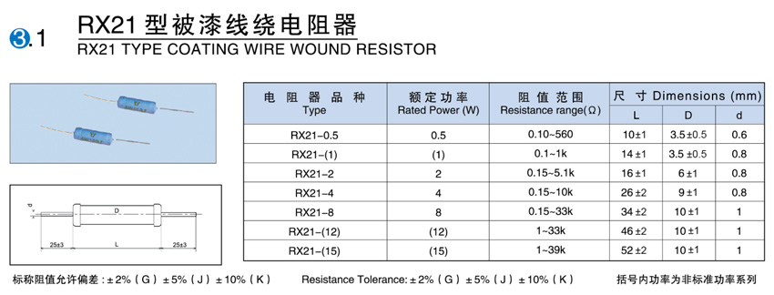 > RX21型被漆線繞電阻器